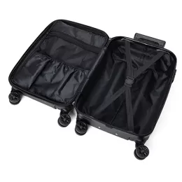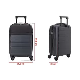 Descrição: Mala de viagem com segredo, feita em plástico ABS e tecido, possui 2 divisões internas, sistema de carrinho de aço, alça de mão superior e lateral, rodas 360 graus e acompanha plaquinha para personalização.
