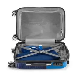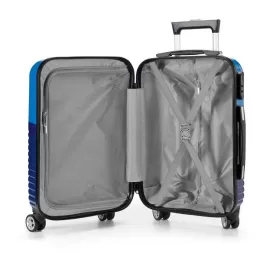 Mala de Viagem Executivo. ABS e PC. Interior forrado, com divisória. 4 rodas duplas giratórias. Pega extensível em ferro, com mola (altura pega estendida: 510 mm). Fecho de segurança com senha. 335 x 550 x 230 mm