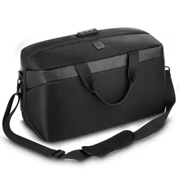 Mala executiva em poliéster 600D com interior em 210D, compartimento interno com zíper, alça de ombro e mão, entrada usb, cadeado com senha/segredo, cadeado tipo TSA e compartimento para notebook de até 15,6″.