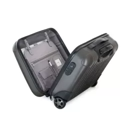 Mala para Notebook. ABS. Compartimento interior para notebook 15.6”. Interior forrado. Pega extensível em alumínio, com mola (altura da pega estendida: 630 mm). Fecho de segurança com senha. Chapa metálica amovível para fácil gravação. 425 x 365 x 200 mm | Chapa: 50 x 30 mm