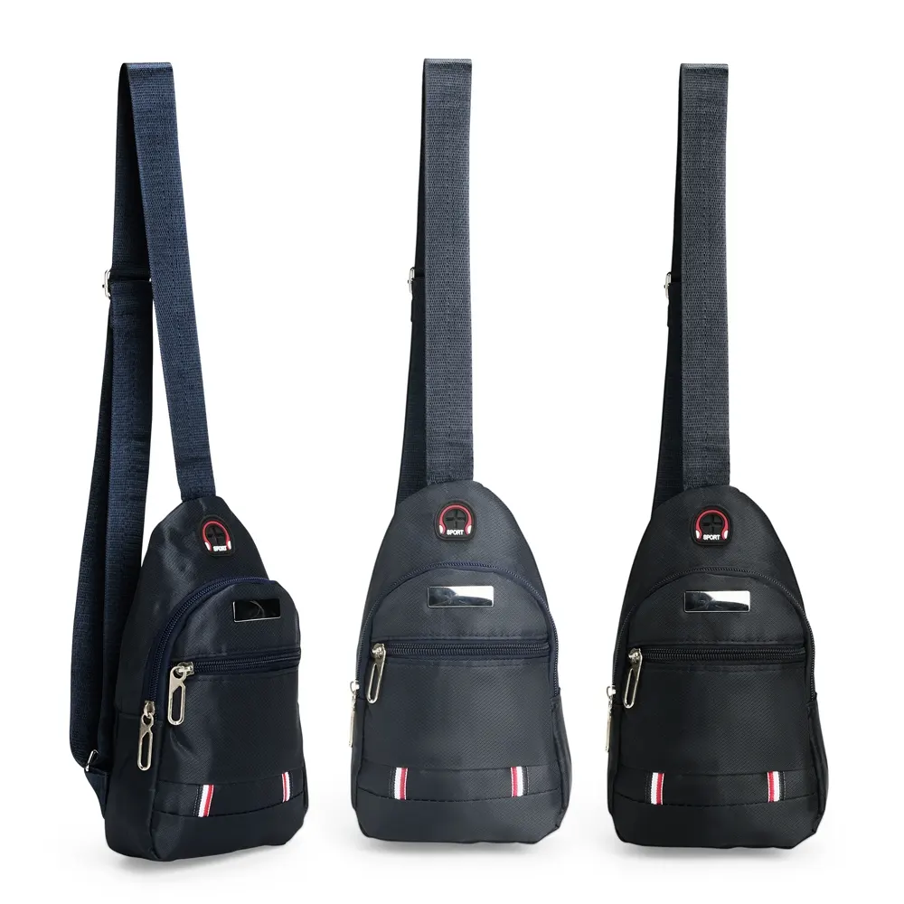 Mini bolsa confeccionada em tecido Oxford resistente à água e alça transversal ajustável em nylon.