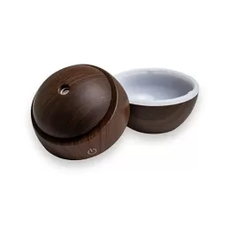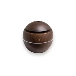 Mini umidificador ultrassônico com led que muda de cor. Acompanha filtro de algodão e um cabo USB. Capacidade para 130ml de água. Produzido em plástico e revestido por adesivo caracterizando madeira. Taxa de tensão DC5V e Taxa de consumo de 2W. O produto não retém energia, funciona somente com o cabo USB conectado a um meio de alimentação de energia. Obs.: para conservação do produto é recomendável utilizar água filtrada e não deve ser usado essências!