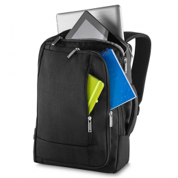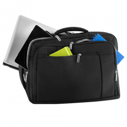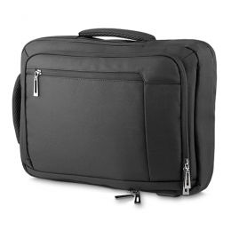 Mochila e Pasta para notebook, pode ser usada como uma pasta, utilizando a alça lateral para ser carregada, ou como mochila normal. Possui cabo USB interno com conector externo na lateral. Divisão interna para notebook, com elástico protetor, um compartimento interno com divisória, dois bolsos externos com ziper. Alça do ziper com furo para cadeado. Forrada. Material: Poliéster.