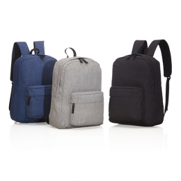 Mochila em tecido polyester, Ziper protegido, Bolso frontal com ziper.