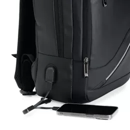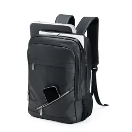 Descrição: Leve tudo o que precisar para todos os lugares com esta mochila de 18 litros. Feita de couro sintético resistente à água, ela garante a proteção de tudo que há dentro da mochila contra chuva e respingos dágua. Além disso, ela possui dois bolsos na frente, um compartimento no meio que fica à frente da abertura principal e outro bolso lateral em rede para carregar garrafas ou guarda-chuvas. Por dentro, é possível guardar notebooks de até 15,6 polegadas e, em meio ao seu amplo espaço, há um extensor USB para fazer recargas com toda praticidade.