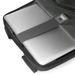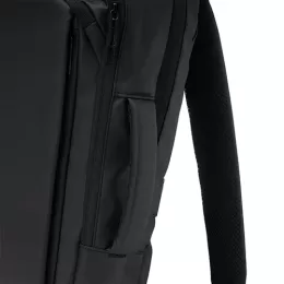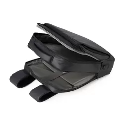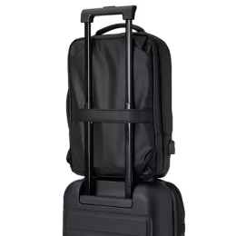 Descrição: Mochila em couro sintético 17 litros resistente à água com cinco compartimentos, sendo o principal com bolso para notebook 15,6. Com divisórias internas para acessórios, a mochila possui suporte externo usb, alça para encaixe em malas de viagem e duas alças de mãos, sendo uma delas lateral para o transporte da mochila no modo pasta.