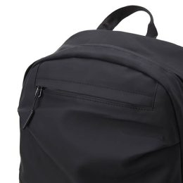 Descrição: Mochila de couro sintético impermeável de 30 litros com três compartimentos, sendo o principal com bolso para notebook 156. Com bolsos laterais e interior listrado, a mochila possui alça para encaixe em malas de viagem, alça de mão e alças para as costas com revestimento espumado. Acompanha plaquinha metálica.