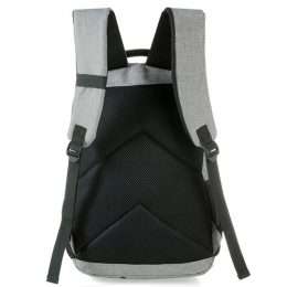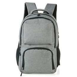 Descrição: Mochila cinza em nylon com compartimento para notebook e detalhes neoprene. Possui compartimento grande com bolso interno; compartimento médio com bolso interno, divisórias para canetas e documentos(além de um bolso com tela e zíper); compartimento frontal superior, compartimento inferior e dois bolsos laterais de tela(nylon). Zíperes com puxador plástico preto, alça acolchoada revestida em nylon, alças para costa(possui elástico inferior na alça direita) ajustáveis revestidas com espuma, parte traseira também revestida de espuma para um maior conforto.