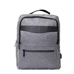 Mochila de nylon 22 Litros com detalhes em couro sintético e três compartimentos, sendo o principal com bolso para notebook 15,6. Mochila possui bolso lateral e suporte externo usb.
