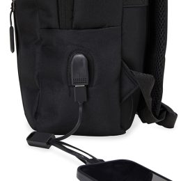 Descrição: Mochila de nylon 23 Litros com 3 compartimentos, sendo o principal com bolso para notebook 15,6. Com divisórias internas para acessórios, a mochila possui bolso lateral, suporte externo USB e alça para encaixe em malas e viagens.