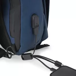 Mochila de ombro de 16 litros com 4 compartimentos. Possui na parte superior abertura com velcro para diversos itens esportivos, como raquetes de tênis, squash e badminton. A mochila contém dois bolsos para tablet, bolso lateral com zíper, divisórias internas para acessórios, alça ajustável, área costal com revestimento espumado e suporte externo USB.