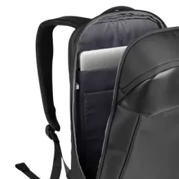 Descrição: Mochila de 23 litros premium em poliéster impermeável com dois compartimentos, sendo um deles para notebook 15,6 e tablet 10,5. Com divisórias internas para documentos, a mochila possui adaptador USB externo, área costada e alças para as costas com revestimento espumado e alça de engate paa malas de viagem.