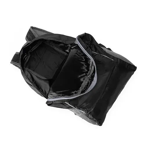 Descrição: Esteja pronto para tudo o que vier com esta mochila dobrável! Ela combina praticidade e estilo com seu design funcional e enxuto. Quando dobrada, ela assume um formato parecido ao de uma pasta. Porém, basta abri-la para desdobrar e aproveitar ao máximo de todos os seus compartimentos. Feita em nylon impermeável e com capacidade de até 13 litros, a mochila dobrável conta com um bolso externo e outro externo, além de dois bolsos laterais em tela. A versatilidade deste item torna-o uma opção excelente para a prática de atividades físicas ao ar livre ou para a rotina do cotidiano urbano.
