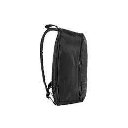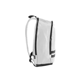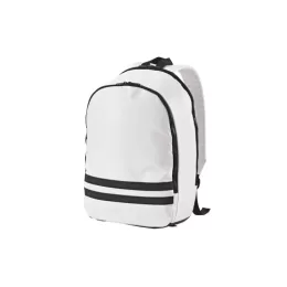 Mochila em 290T poliéster reciclado (100% rPET), em sarja com forro em 210D poliéster reciclado (100% rPET). Contém compartimento posterior com divisória para notebook até 15″ e compartimento frontal totalmente forrado. Parte posterior e alças almofadadas. Contém duas faixas pretas refletoras na parte frontal. Capacidade até 18 L. 300 x 470 x 150 mm