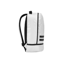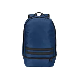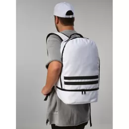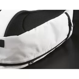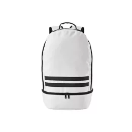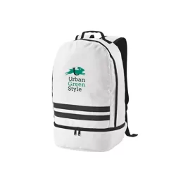 Mochila em 290T poliéster reciclado (100% rPET), em sarja com forro em 210D poliéster reciclado (100% rPET). Contém 1 compartimento principal e 1 compartimento inferior ideal para guardar sapatos. Mochila totalmente forrada com costas e alças almofadadas. Contém duas faixas pretas refletoras na parte da frente. Capacidade até 25 L. 300 x 480 x 210 mm