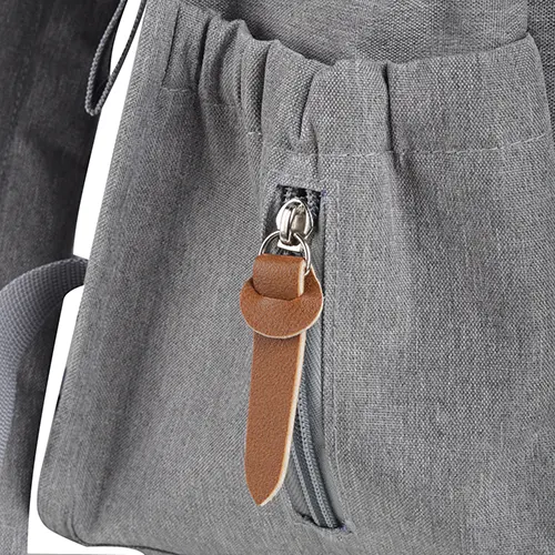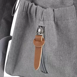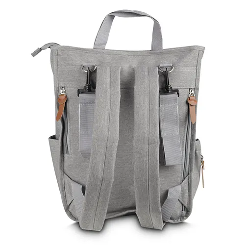 Mochila Multifuncional em poliéster 300D com detalhes em PU e interior em 210D. Possui alça de mão, alça para ombro e engate para carrinho de bebê. Conta com 2 bolsos laterais, 2 frontais com zíper e 2 compartimentos traseiros com zíper. O interior inclui divisórias, uma delas térmica, e uma divisória com zíper. Prática e versátil.