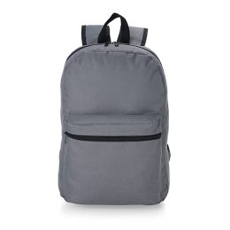 Descrição: Mochila confeccionada em Nylon 17 Litros. Contém bolso frontal com zíper, alça de mão em nylon e alças para as costas ajustáveis.
