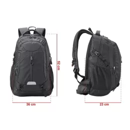 Descrição: Leve tudo e mais um pouco com a nossa mochila de poliéster de 43 litros. Espaçosa e eficiente, possui três compartimentos, sendo o principal com um bolso para notebook de até 15,6 polegadas. Conta com divisórias internas para manter acessórios organizados e bolsos laterais de tela para acesso fácil aos itens essenciais. Esse modelo possui revestimento espumado nas costas para maior conforto e, para sua segurança, tem um detalhe refletivo na parte frontal, aumentando sua visibilidade em condições de pouca luz. Além disso, há um apito integrado em uma das fivelas, e as alças de compressão e compensação ajudam a distribuir o peso de forma equilibrada.