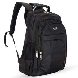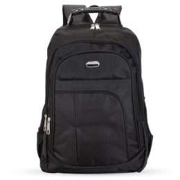 Descrição: Mochila nylon poliester para notebook. Possui compartimento grande com bolso interno para notebook, dois compartimentos médios, bolso pequeno frontal e bolsos laterais de rede. Zíperes prata, alça superior com pegador emborrachado e tira de silicone com cabo de aço interno para garantir maior resistência, alça superior de nylon, alças para costa ajustáveis revestidas com espuma, parte traseira também revestida de espuma para maior conforto. Possui placa metálica espelhada na parte frontal.