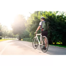 Mochila “Roll-top” para notebook em 600D e forro em 210D. Possui um compartimento principal espaçoso para notebook até 17.3″, com fecho de enrolar no topo. Bolso frontal com zíper. Capacidade até 21 L. 320 x 440 x 130 mm