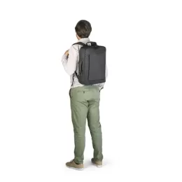 Mochila híbrida (2 em 1) em 600D com 2 modos de transporte. Possui um modo mochila, com parte posterior e alças almofadadas com mecanismo que permite ocultá-las. Também pode ser utilizada em modo pasta, com uma pega de mão reforçada e confortável. Contém 2 compartimentos principais: 1 com bolso para notebook até 15,6″ e outro com vários bolsos multifuncionais. Possui ainda 1 bolso frontal com fecho e banda de transporte para trolley. 320 x 425 x 120 mm