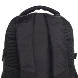 Parte externa: 1 compartimento, alça de mão e ombro acolchoado, saída USB e fone de ouvido, 2 bolsos frontais com zíper e 2 bolsos laterais.