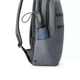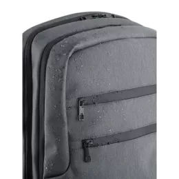 Mochila para notebook em Nylon 2Tone impermeável com 2 compartimentos e alças almofadadas. O compartimento posterior tem 2 divisórias almofadadas com fecho em velcro para notebook até 17” e tablet até 10.5”. Compartimento frontal com diversos bolsos interiores. Contém dois bolsos na parte frontal, tendo um deles bloqueio RFID. Nas laterais existe um bolso para garrafas em elastano e outro para o guarda chuva, com ilhós perfurados para evitar acumulação de água. A parte posterior almofadada tem um bolso oculto e uma banda para transporte em trolley. 320 x 450 x 140 mm
