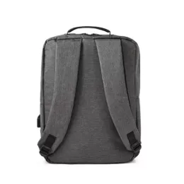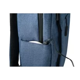 Mochila para notebook em 300D com 1 compartimento principal com bolso forrado para computador até 15,6″ e diversos bolsos interiores. Contém ainda bolso frontal, bolso lateral e entrada USB. Parte posterior e alças são almofadadas. 300 x 420 x 120 mm