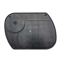 Mouse pad com calculadora plástica. Material plástico prata, mouse pad preto emborrachado com apoio para mão revestido com espuma, calculadora solar de 8 dígitos circular com detalhes em relevo na lateral(acompanha uma bateria L1131) e área plástica em preto para personalização.