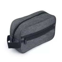 Nécessarie em tecido poliéster 300D, alça de mão e bolso externo com zíper.