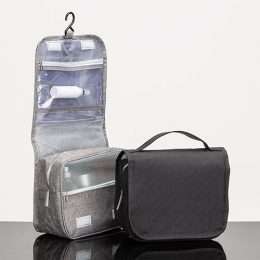 Descrição: Necessaire organizadora em tecido nylon Oxford, abertura frontal por velcro e alça superior, parte interna com gancho plástico; bolso interno superior de pvc e bolso de tela superior; dois bolsos inferiores de zíper, sendo o primeiro com detalhe superior em tela e 3 divisões internas e o segundo na parte frontal interna. Perfeita para lhe acompanhar em viagens e até mesmo transportar seus itens pessoais do dia a dia com organização e praticidade.