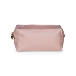 Descrição: Necessaire impermeável de PU, parte interna com revestimento em tecido, possui alça superior para as mãos, e detalhe dourado em formato de coração no zíper.