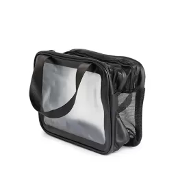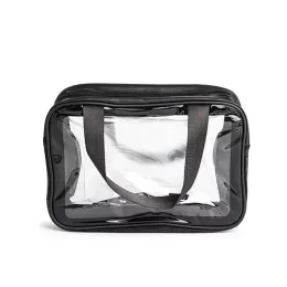 Descrição: Nécessaire de PVC e PU com duas divisórias, uma delas em malha respirável, e duas alças laterais para facilitar o transporte.