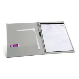 Pasta A4. 600D. Bloco: 20 folhas pautadas. Esferográfica não inclusa.