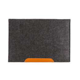 Pasta Envelope com forro e uma divisória. Tecido de feltro com detalhe em couro sintético e dois botões pretos superiores. Acompanha placa metálica para personalização.