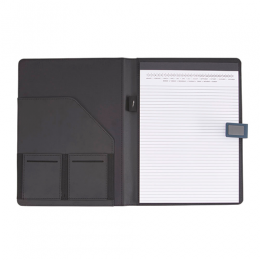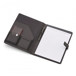 Pasta Executiva Almofadada com caderno de 20 folhas A4, Bolso na capa 8x12cm, Bolso interno para Cartões, Telefone e Documentos, Fechadura Magnética, Não acompanha caneta.