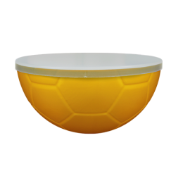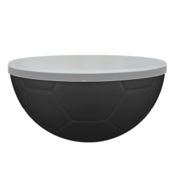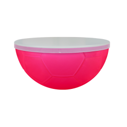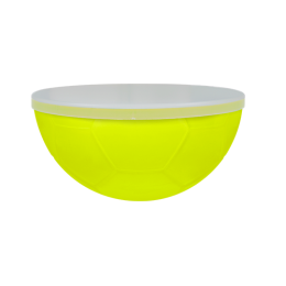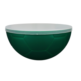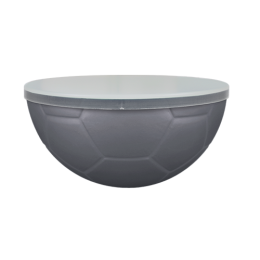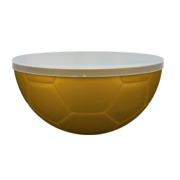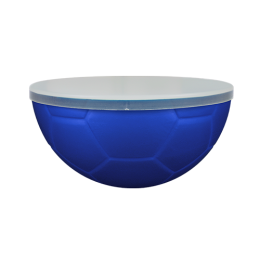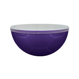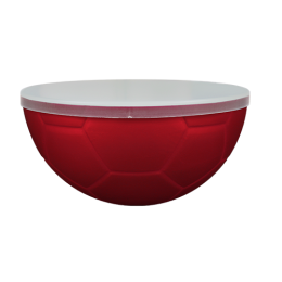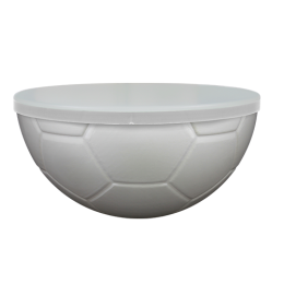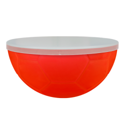 Capacidade 240ml. Petisqueira em formato de bola de futebol com tampa, feito em Plástico Premium (PP), atóxico, resistente, acabamento impecável, pode ser levado ao microondas e máquina de lavar louça.