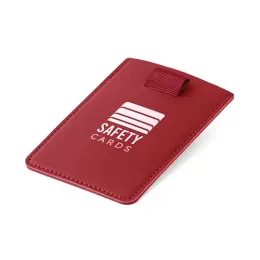 Porta cartões. PU. Tecnologia de bloqueio RFID. Fita em poliéster para retirar facilmente seus cartões. 92 x 65 mm