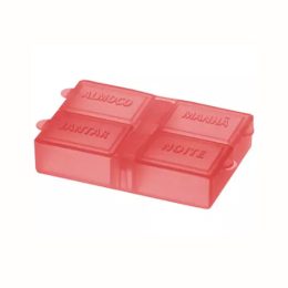 Porta Comprimidos personalizado em polietileno com 4 compartimentos. Personalizado em Silk. É uma opção de brinde barato para seu evento com área nobre de impressão da logomarca.