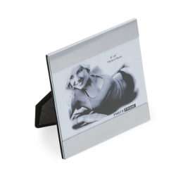 Porta retrato 10 x 15 com duas chapas metálicas(superior e inferior) que podem ser removidas. Possui uma tela de vidro e parte traseira(apoio) revestido de veludo, acompanha película protetora.