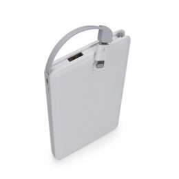 Power Bank Slim com Níveis 2033 e adaptador lightning. Material plástico resistente com texturização semelhante à couro sintético, possui botão lateral para ligar e desligamento automático. Possui entrada e saída DC 5V, possui 4 luzes led indicativas de carga. Bateria de 6000mAh. Possui cabo acoplado ao carregador com conector lightning para encaixe e acompanha cabo USB. O carregador deve ser usado com frequência, caso contrário deverá ser carregado a cada 2 meses pelo menos 8 horas para prolongar e manter o bom uso da bateria. Compatível com celulares, iphone, ipad, ipod, tablets, mp3, câmeras dentre outros eletrônicos.