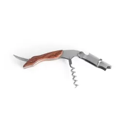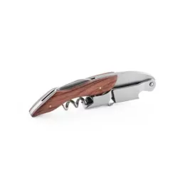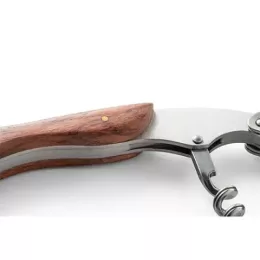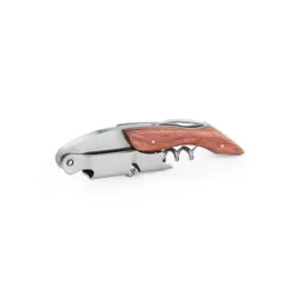 Saca rolhas em madeira e aço inox. Com sistema de mola para extração em duas fases. Com canivete de escanção. 120 x 28 x 13 mm