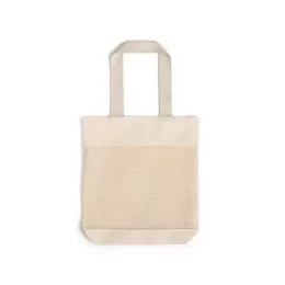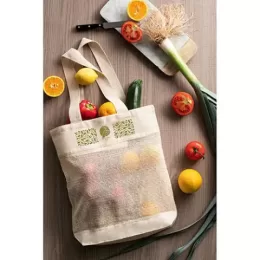 Sacola 100% algodão (180 g/m²) com malha 100% algodão na parte frontal. Alças em webbing com 65 cm. Sacola ideal para compras. 390 x 430 x 80 mm