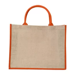 Sacola ecológica confeccionada em juta com alças costuradas na parte interna.