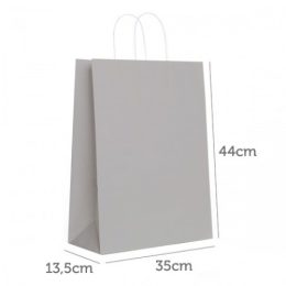 Sacola em papel Branco 110 g/m² e alças de papel torcido 22 cm.