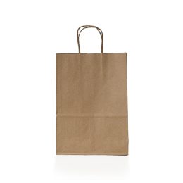 Descrição: Sacola em papel kraft com alça de papel.