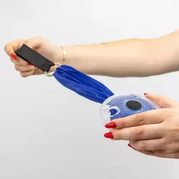 Descrição: Reutilizável e super versátil! Nossa sacola portátil é ideal para atender as mais diversas necessidades do dia a dia, como compras rápidas, caminhadas e outras situações em que seja necessário usar uma sacola. Feita de nylon, ela substitui as sacolas plásticas, podendo ser reutilizada inúmeras vezes. Para utilizá-la, puxe através da alça para descompactá-la, e para guardá-la, rebobine o estojo.