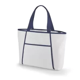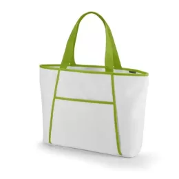 600D. Fecha com zíper. Compartimento exterior aberto (forrado) com bolso frontal. Alças em webbing de 55 cm. Food grade. 470 x 305 x 120 mm