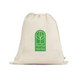 Sacola tipo mochila 100% algodão orgânico (140 g/m²), com alças em algodão para fechar. 370 x 410 mm