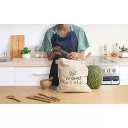 Sacola tipo mochila 100% algodão orgânico (120 g/m²) proveniente de um cultivo sustentável, sem químicos ou pesticidas. 370 x 410 mm